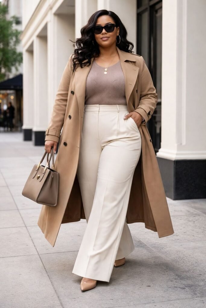 21. Trench Coat with Wide-Leg Pants