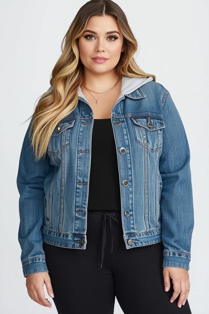 A denim jacket over a hoodie is a casual, layered look that’s perfect for everyday wear. Pair with straight-leg jeans or leggings and combat boots. Accessories like a beanie or scarf add extra warmth and a street-style vibe to the ensemble.