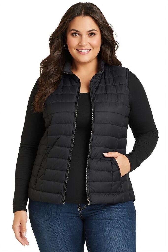 A quilted vest layered over a long-sleeve top or turtleneck is perfect for transitional weather. Pair with leggings or skinny jeans and ankle boots. Scarves, mittens, and cozy hats make this outfit functional and stylish for outdoor winter activities.