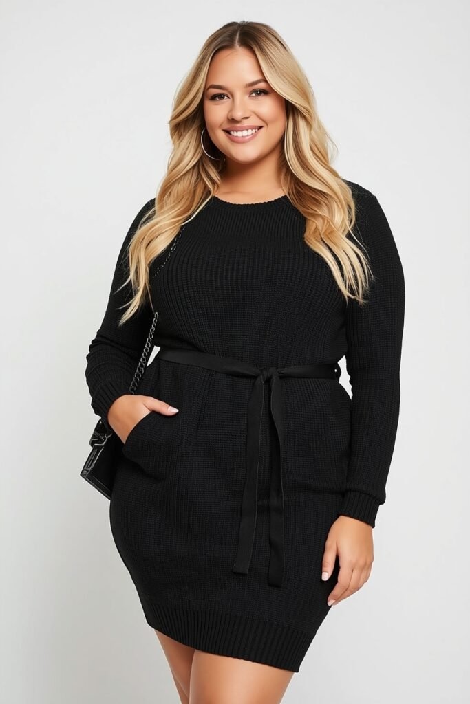 A long knit dress with a belted waist accentuates curves while keeping you warm. Pair with tall boots and a wool coat for a chic, polished look. Scarves and textured handbags add cozy layers that are perfect for winter fashion.